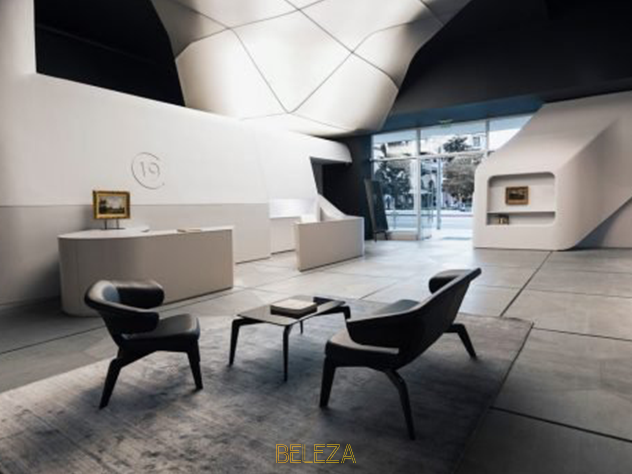 This unique Beverly Hills art gallery juxtaposes classic details of a traditional art gallery with modern forms of luminous back-lit translucent fabric, creating a space that is simultaneously reminiscent of a personal collection as well as a modern art museum.